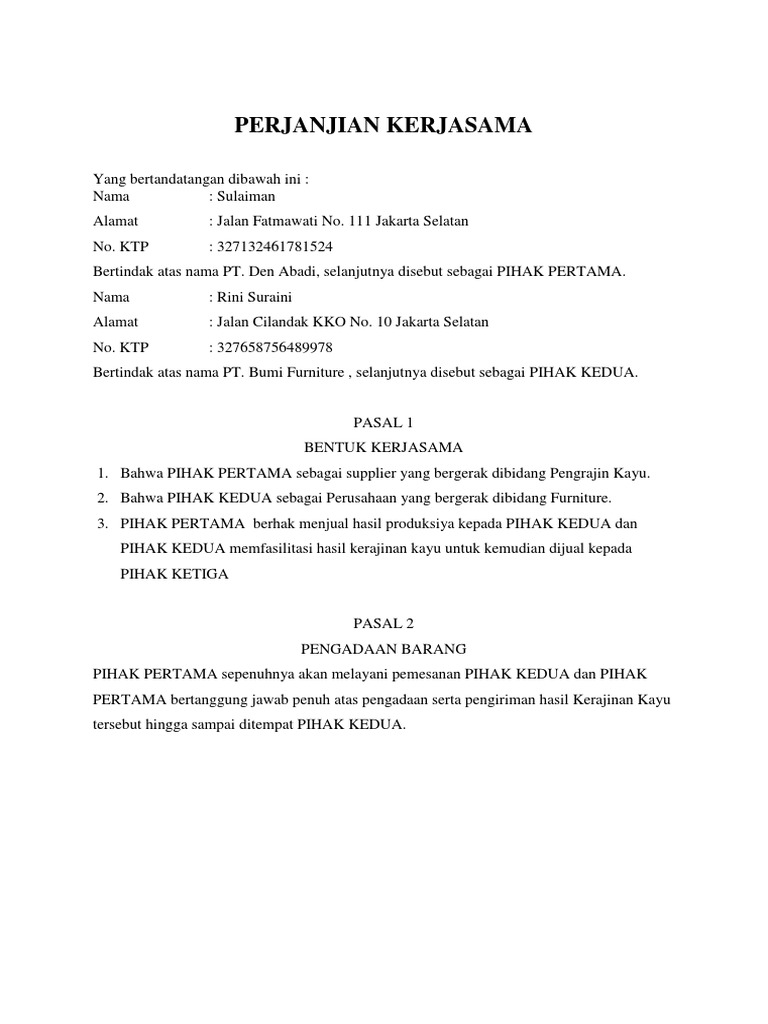 Contoh surat perjanjian kerjasama bisnisdeskripsi lengkap.